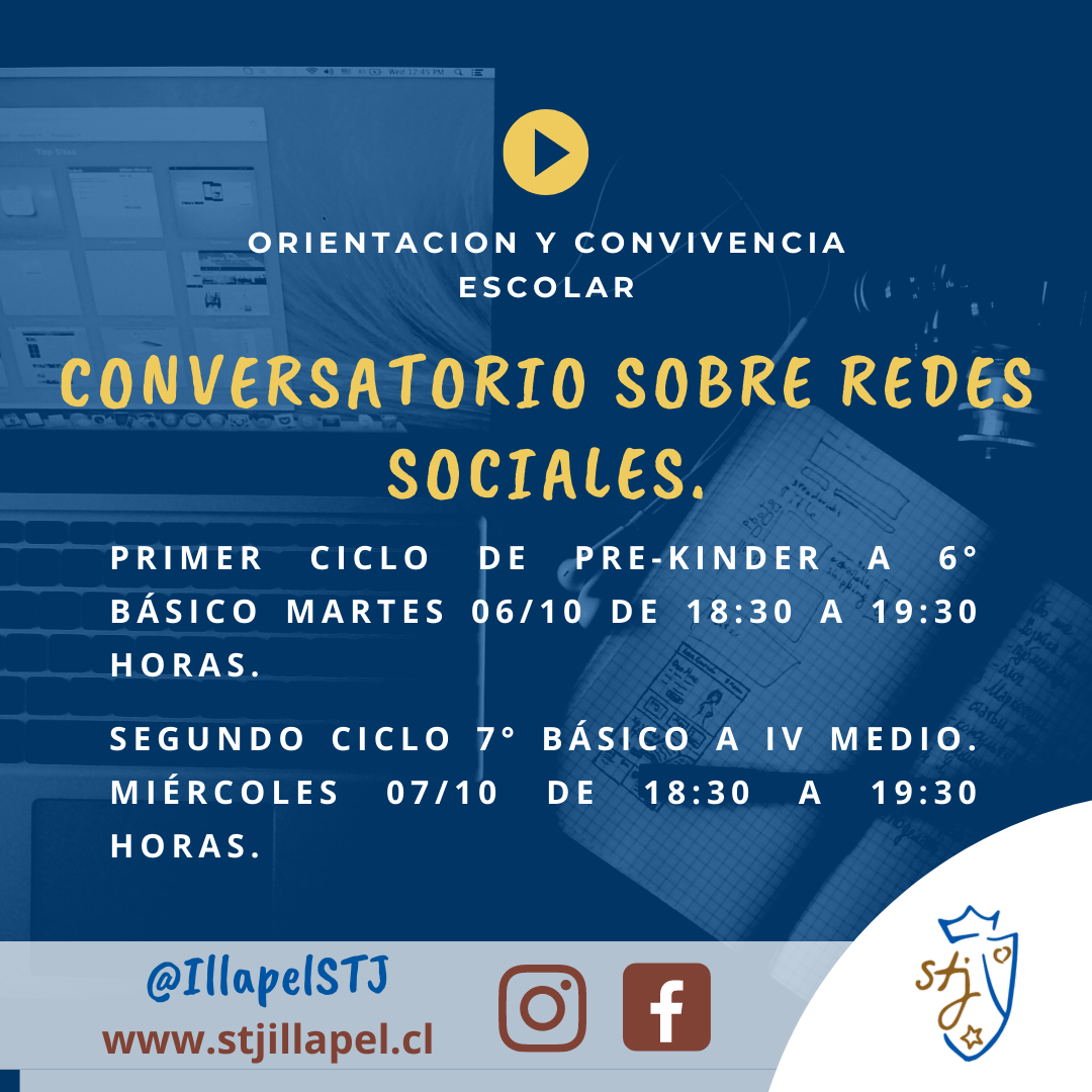 Durante esta semana el departamento de orientación y convivencia escolar nos invita a conversatorios con las familias destinados a brindar herramientas y un espacio de conversación para dialogar sobre la gestión de las redes sociales.