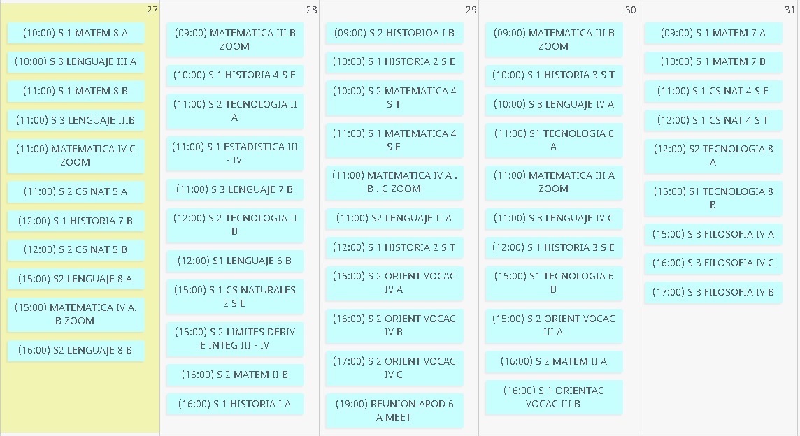 Horarios de clases virtuales para semana desde el 27 al 31 de julio.