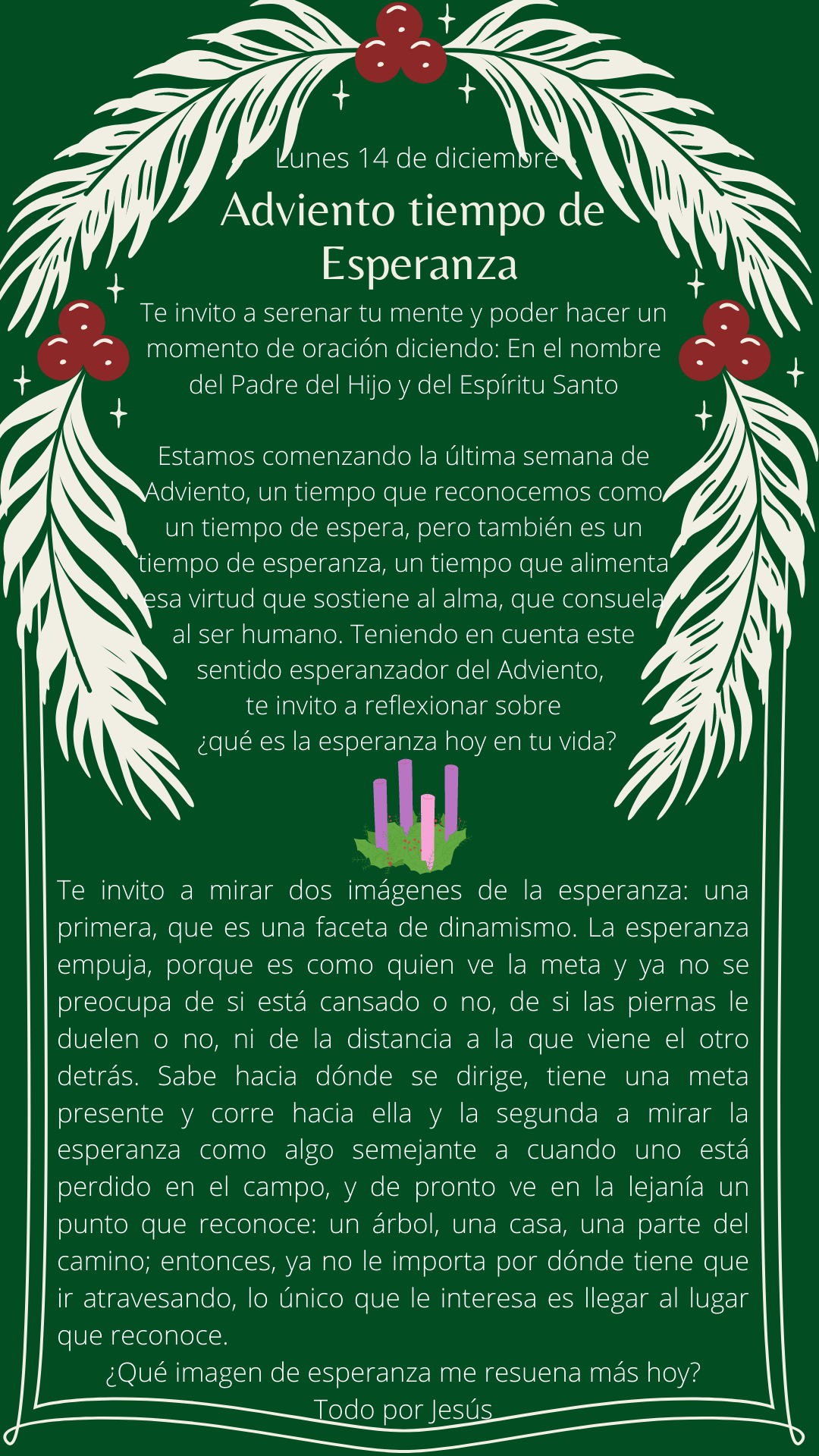 Momentos de oración de la semana del lunes 14 al domingo 20 de diciembre.