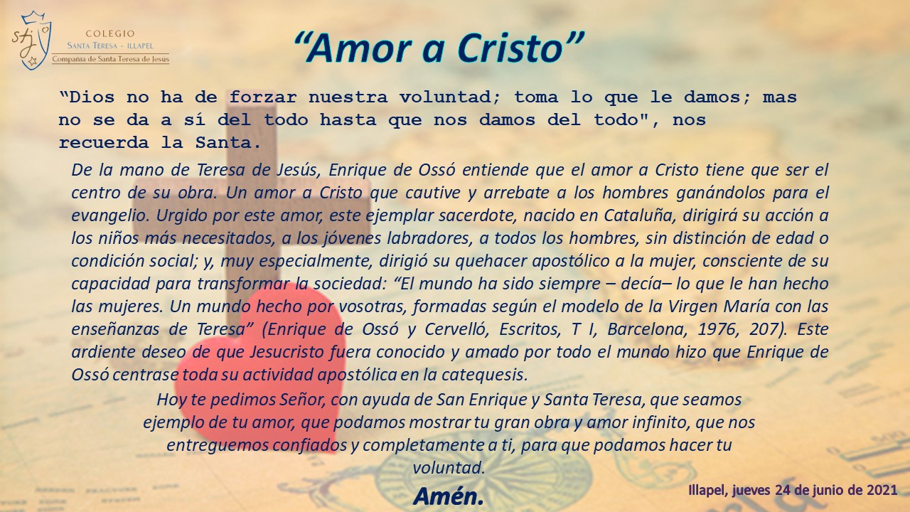 El amor a Cristo nos invita a entregarnos, a dejarlo actuar en nosotros, para que podamos dejarnos en sus manos sin medida, déjate en las manos de Dios