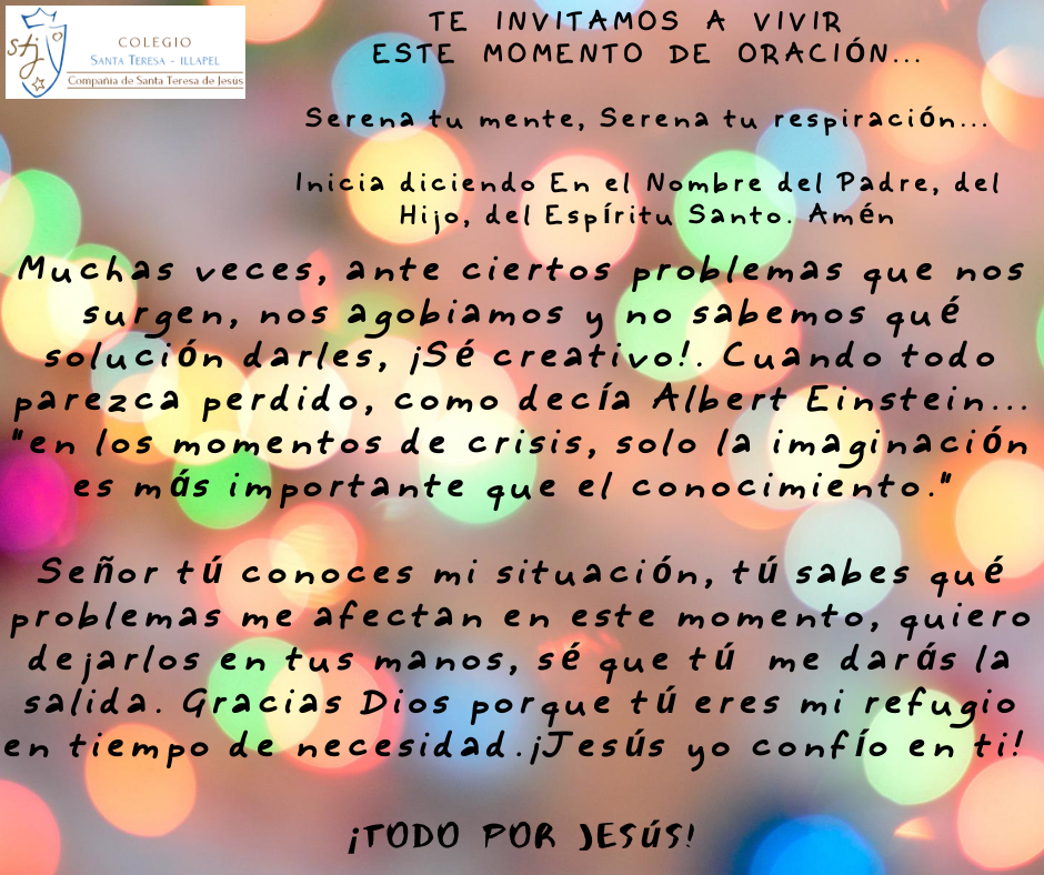 La oración es una amistad, en la que aprendemos a mirarnos como nos mira Dios, en la que aprendemos a amarnos como nos ama Dios y a amar como Él, en la que descubrimos dónde está nuestro verdadero valor. Te invitamos esta semana a regalarte estos momentos de oración...