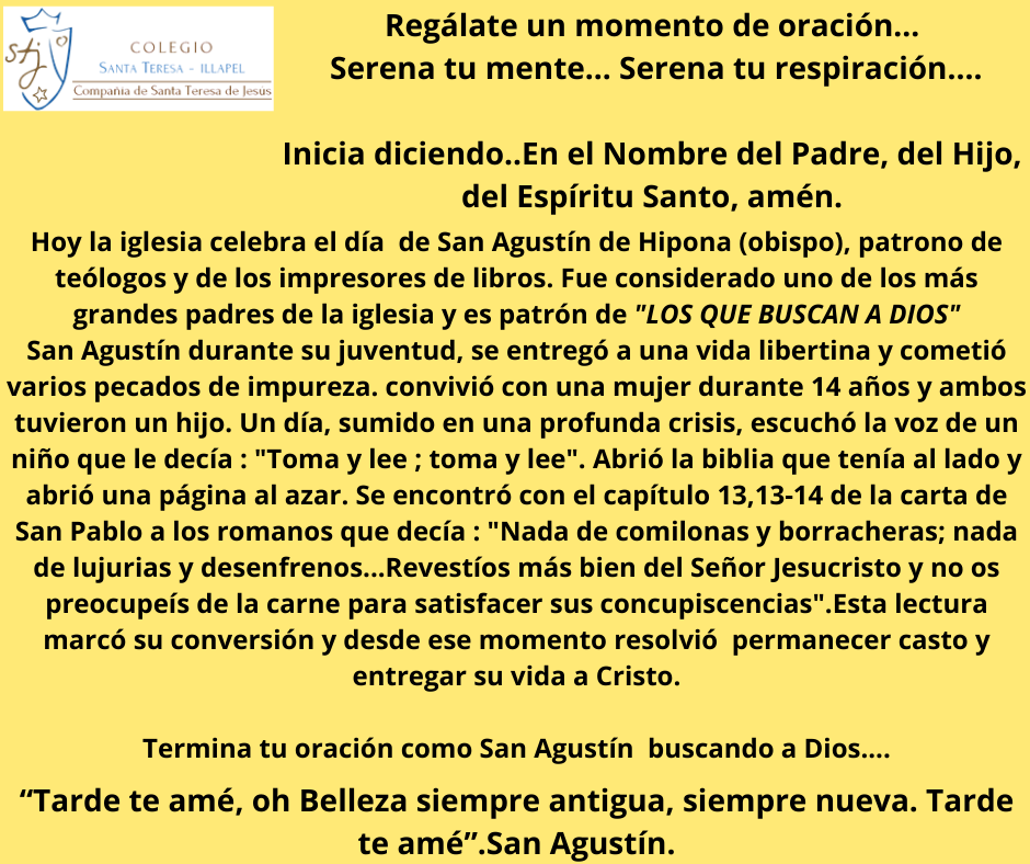 Momentos de oración de la semana del lunes 25 al domingo 30 de agosto.