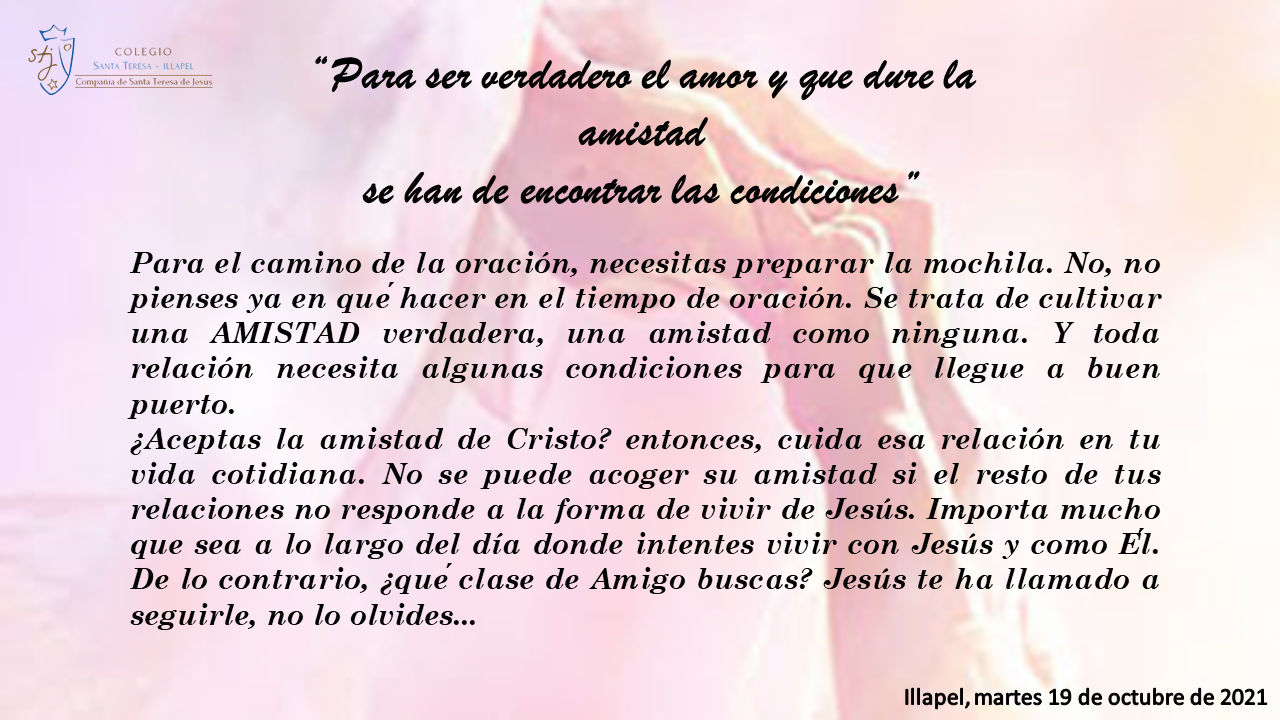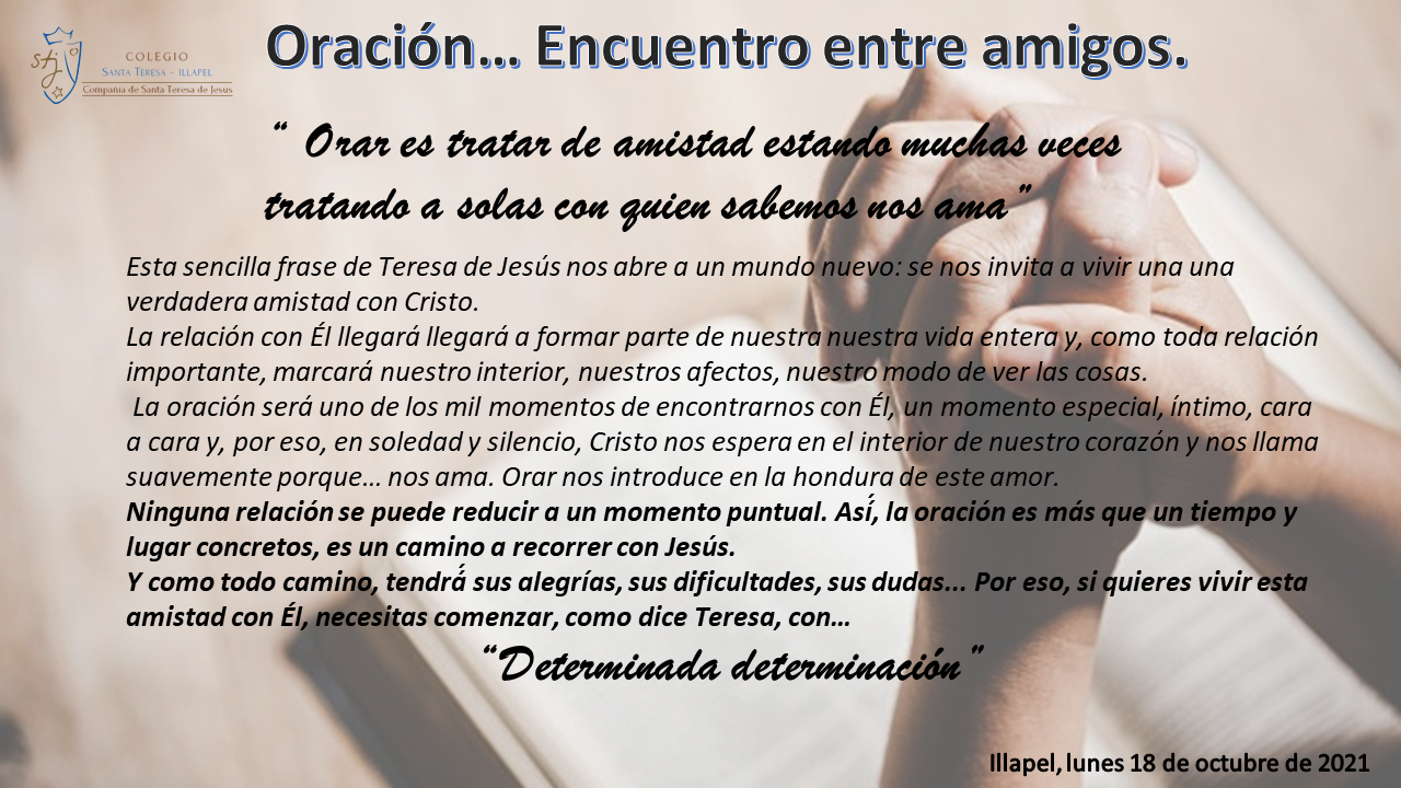 "Orar es tratar de amistad estando muchas veces tratando a solas con quien sabemos nos ama"